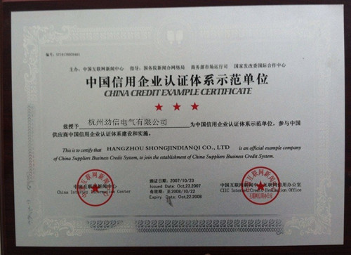 中國(guó)信用企業(yè)認(rèn)證體系示范單位